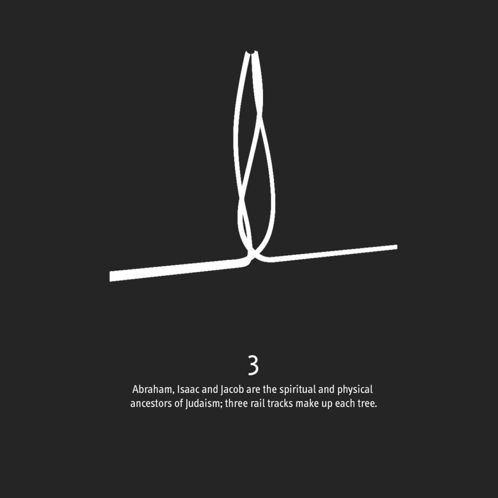 Our Shoah Memorial adjacent to the railway station in Bologna, Italy, takes the rail tracks and transforms them into a symbolic grove of trees. As the rail tracks detach from the earth and curve towards the heavens, their graceful form assumes a delicate monumentality. From being associated with death, they are transfigured into symbols of nature, life and renewal – from violence to beauty, and from anonymity to memory.